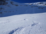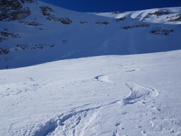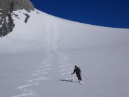 Spalten gut eingeschneit, Heute ohne Steig und Harsteisen.