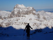 Am Anfang hart, unterhalb Vorfrut bis Tierälpligrat 5 bis 10 cm Pulver auf tragendem Altschnee. Nun Teilweise windgepresster Pulver und abgeblasene Stellen bis zum Chammlijoch.Bis zum Gipfel Pulver, teilweise auch windgepresst.
