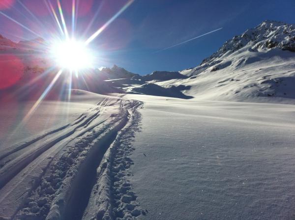 Oberhalb 2200 m sehr schöner Pulverschnee, darunter mit hartem Deckel. Solange der Winter nicht zurückkommt, ist die Bielerhöhe wegen ihrer Höhe (2000 m) allemal ein idealer Ausgangsort.