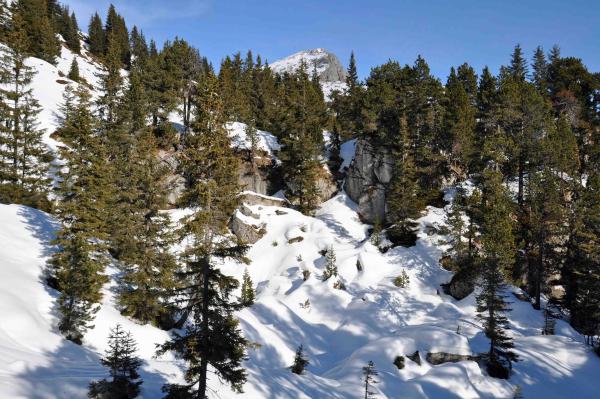 Sonnst eigentlich ideal. Es gab kaum Schneeschuspuren und lediglich die Spuren der dreier Mannschaft die es zu Fuss machten (mit manchmal tiefes Einsenken...