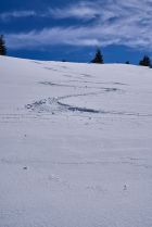Start bei der ersten Haarnadelkurfe auf der Meniggrundstrasse. Schönstes Frühlingswetter bei 2°C um 8:45. Schi hoch tragen bis kurz vor Brätliplatz. Ab hier durchgehende Schneedecke. Im Aufstieg leicht bruchharstig bis Obergestele. Am Gipfelhang wechselten sich die Verhältnisse von harten und leicht windharstigen Passagen ab.