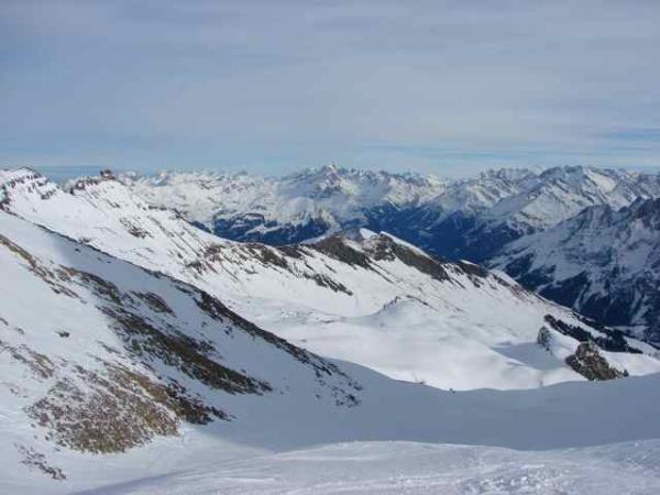 Wir fuhren vom Gipfel aus hinunter. In der Gipfelnähe war jedoch der Schnee knapp ausreichend. Ab dem "Pass" sehr guter Pulverschnee! Jedoch war bald der Wärmeeinbruch spürbar. Und der Schnee war teilweise gefroren und ruppig zum Fahren