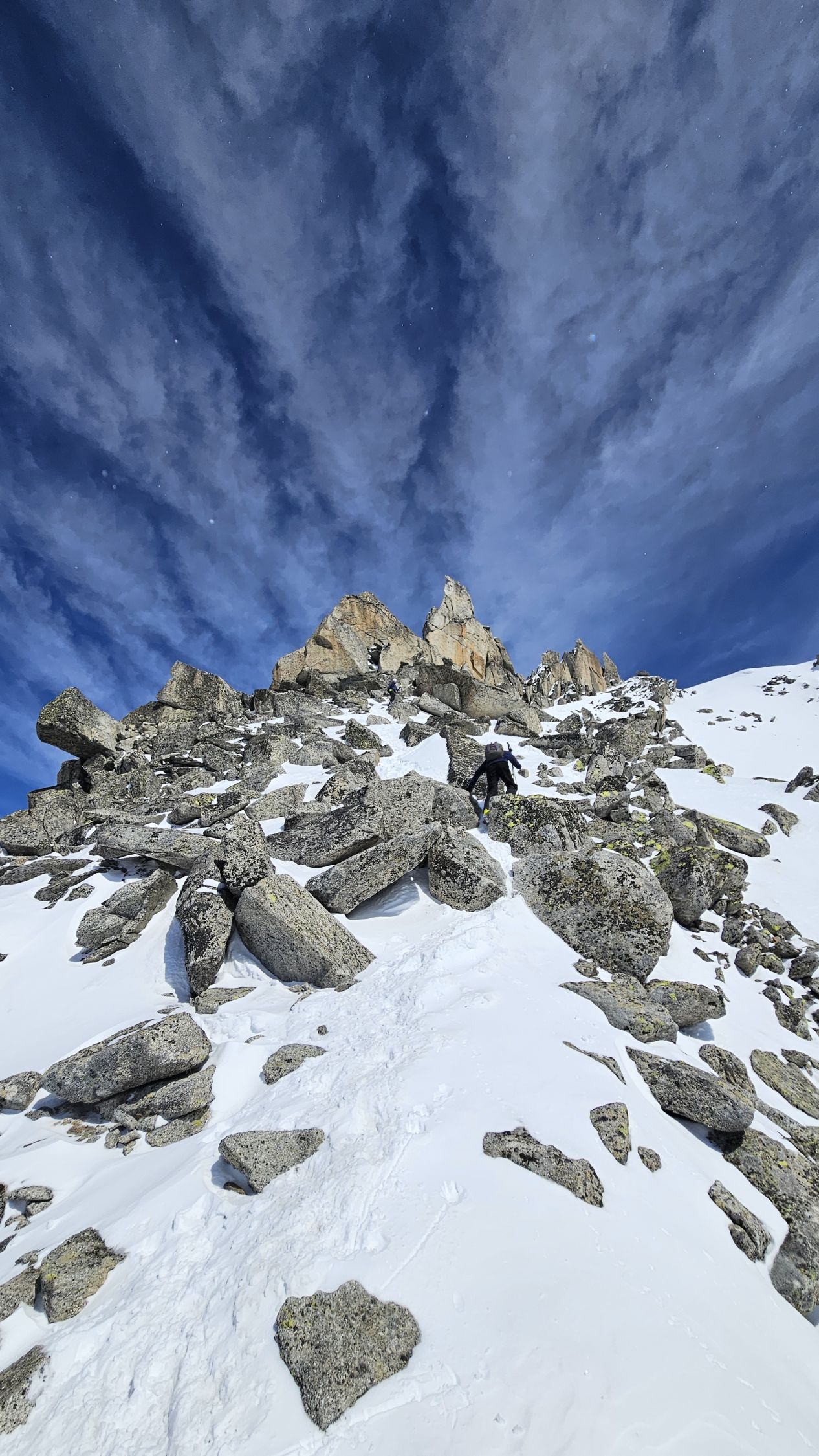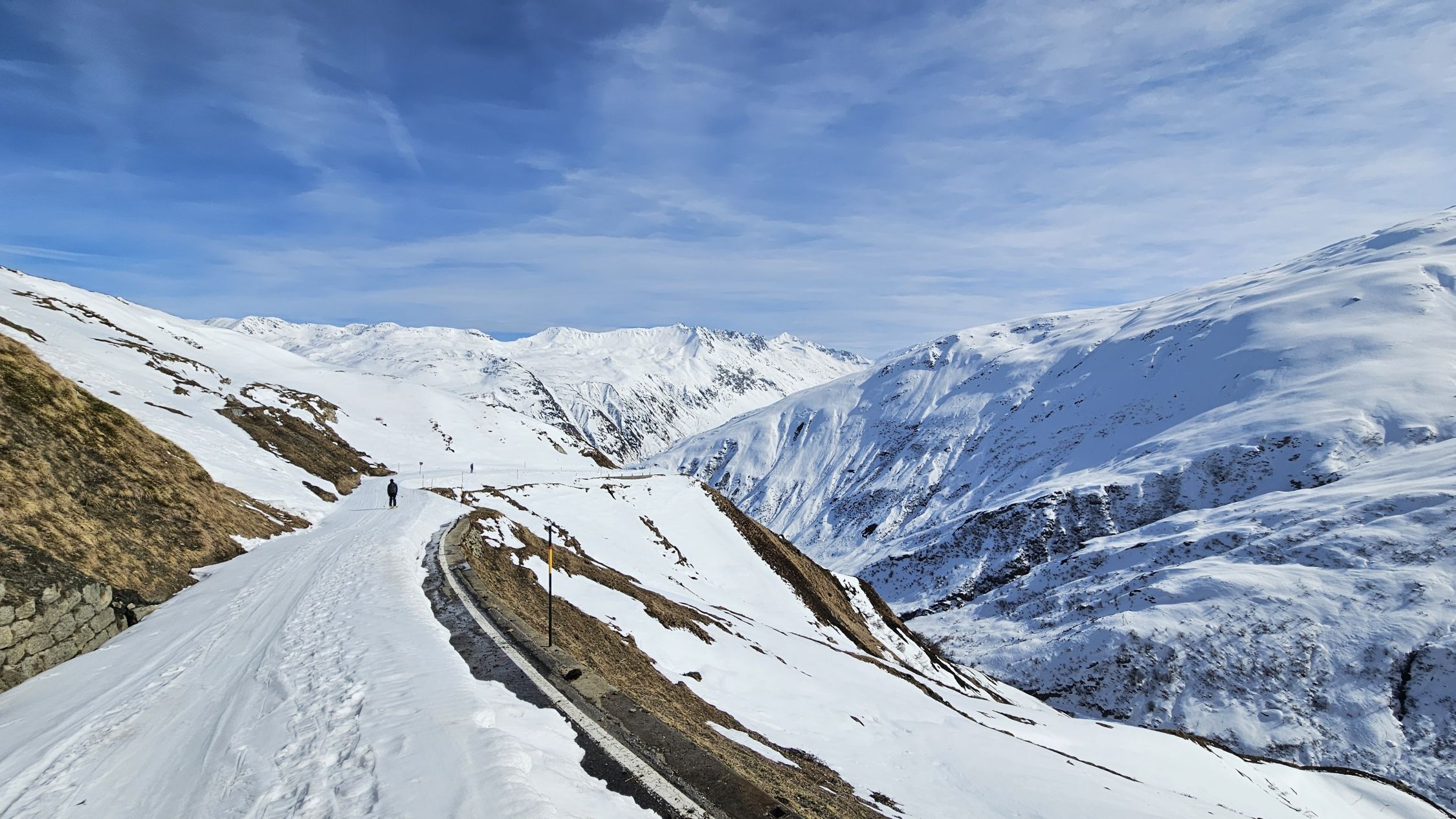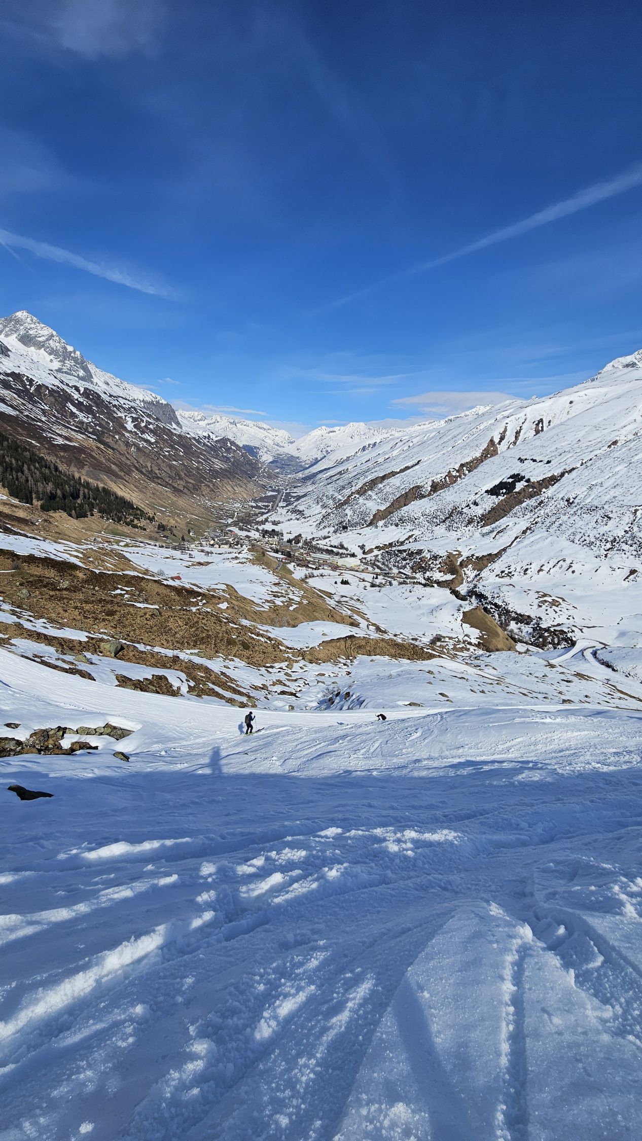 Start in Realp ca. 9Uhr. Sehr kurzer Fußmarsch zu schneebedeckter Furkapassstraße hinter Realp. Schnee unten durchfeuchtet aber gut tragfähig, da zu beginn noch nebelig. Oben je nach Exposition noch trocken und fest oder bereits etwas feucht. Gipfel ca. 14Uhr. Aufstieg mit Pickel angenehmer, ohne auch ok. Abfahrt im Sulz über AH-Hütte und direkt zur Passstraße. Straße durchgehend schneebedeckt.