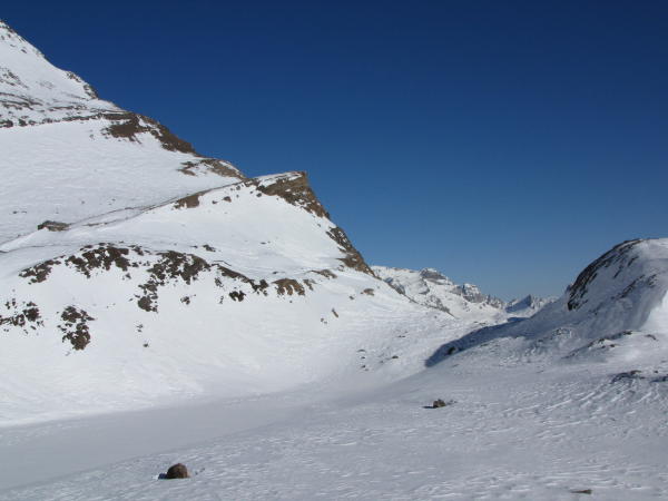 Aufstieg im Schatten, Spur sehr hart. Wir sind fast die ganze Zeit mit den Harscheisen unterwegs gewesen. Die Abfahr nach Rothwald war erstaunlich gut. Der Schnee hat sehr gut getragen. Wir sind nie eingebrochen