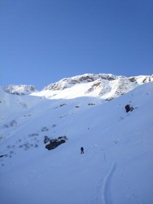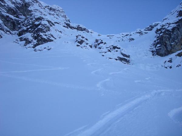 Gestern top Bedingungen auf der ganzen Tour. Powder von oben bis unten. Ganz unten ca. 10 cm auf hartgefrorener Unterlage. In den Nordhängen ab dem Hochgletscherkar dann Traumpulver bis 50cm. Vielen Dank den beiden Vorgängern für die Superspur! Gestern haben wir sowohl am ersten als auch am zweiten Wasserfall die Skier kurz getragen. Geht aber ohne Steigeisen. Runter kann man dann problemlos fahren.