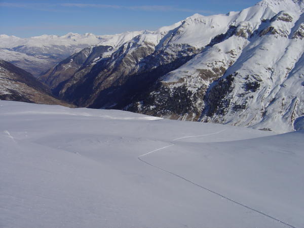 Der Waldstrasse entlang wenig Schnee aber noch knapp fahrbar. Ab den Maiensässhütten bis zum Gipfel beste Skitourenverhältnisse. Eine tragende Unterschicht mit einem luftigen Pulver obenauf. Einfach zum genissen.