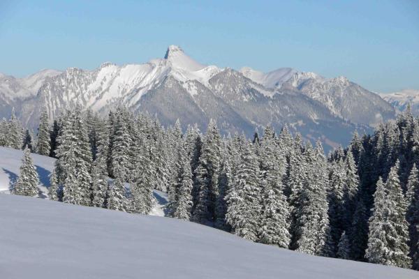 Wunderschöne Winterlandschaft mit weiss gereifte Bäumen am Jaunpass. Den Neuschnee der letzten Tagen gibt wieder das Wintergefühl zurück jedoch nur das Gefühl, nicht die Schneedecke... Für Schneeschuhe reichte die Decke allerdings und so konnten wir problemlos jedoch mit eisig kalten Bise aufs Bäderhorn hinaufsteigen.
