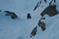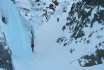 Ab Hütte griffiger, windgefestigter und tragfähiger Schnee. 1. Couloir gut mit Skiern machbar (erfahrene Tourengänger mit Routine in Spitzkehren). 2. Couloir zu Fuss, griffiger Trittschnee, gefestigt. Ohne Seil machbar. Steigeisen erhöhen Sicherheit. Schnee am Gipfel windgefestigt.