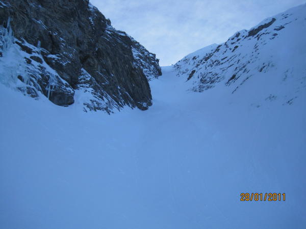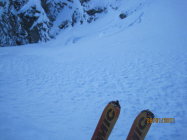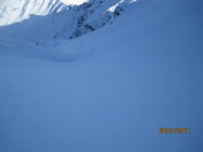 im östlichen Nordcouloir windgepresster Pulver welcher aber weder mit Ski noch zu Fuss trägt!