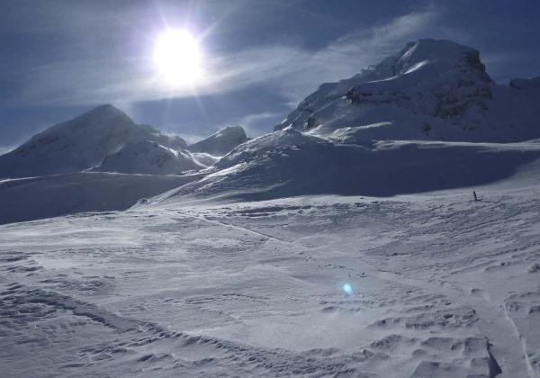 Am Berg viel Wind und entsprechende Verfrachtung, Schnee teils gepresst, teils wird eine harte tragende Kruste freigeblasen, ziemlich unangenehm in den steileren Abschnitten.