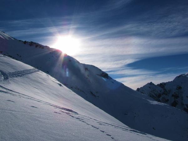 Untendurch ist der Schnee knapp doch noch gut fahrbar. Ab Pt1926 (Westflanke) einfach Traumbedingungen!! Knietiefer Pulver, Sonne pur und keine Leute...wir waren ganz alleine.