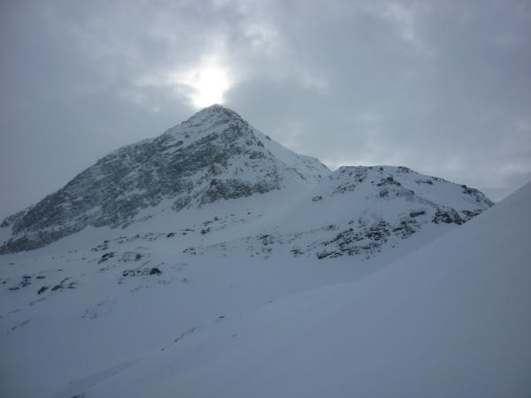 Westflanke zum Gipfel gute Aufstiegsspur teilweise hartgepresster Schnee und stellenweise vereist. Harscheisen von Vorteil. Wissgrätli wurde von anderen Tourengänger umgangen, scheint sicher zu sein.