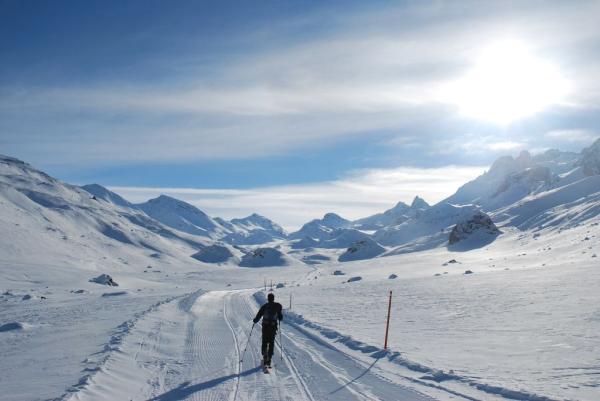 Sehr wenig Schnee im ganzen Gebiet der Heidelberger Hütte, westseitig sehr verblasen, ansonsten windgepresst, Steinkontakt lässt sich aber vermeiden, sehr mühsamer Weg von und zur Hütte