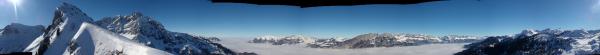 Nebel bis knapp über Hüttenberge. Wenig Schnee im unteren Drittel, oben schöner Pulver.