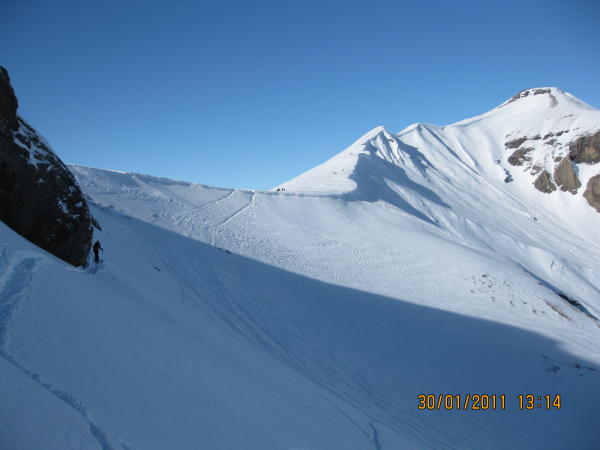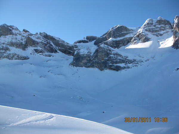 Die eher schattigen Hänge nördlich des Schwarzgraben bieten Unmenge Platz für freies Abfahren. Bei Neuschnee ist aber auch da Vorsicht angebracht!