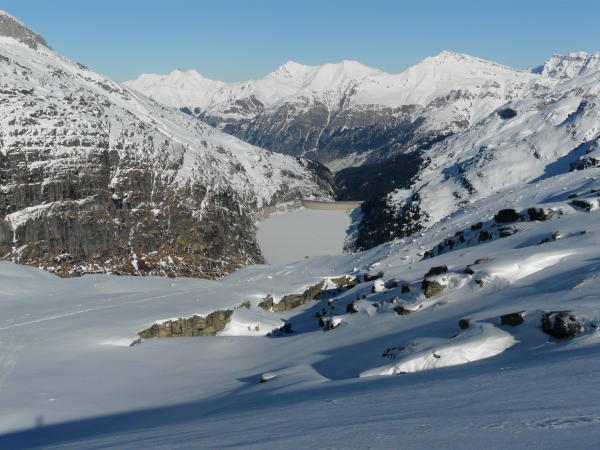 Die Abfahrt zum Zervreilasee bot bis zur Seestrasse feinster Powder.
