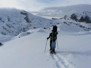 Trotz heftiger Föhnstürme Mitte Januar fanden wir eine kompakt eingeschneite, relativ homogene Winterlandschaft mit trockenem und pulvrigem Schnee vor.
