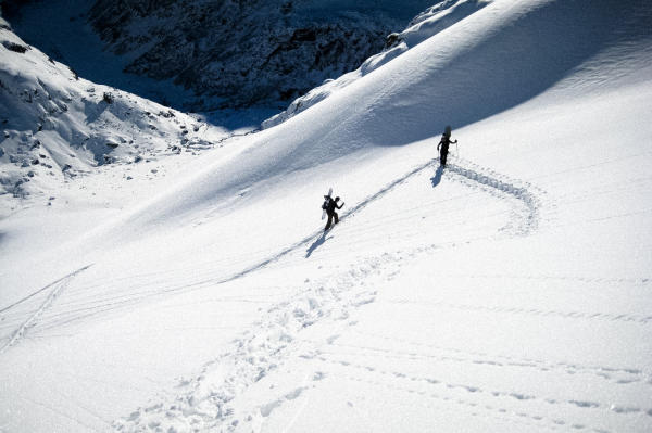 Grundsätzlich genügend Schnee auf der ganzen Route. Pulverschnee vom Feinsten am Wendenhorn.