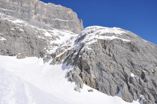 Einstieg ins Gemstobel ist sehr hart aber dank der Stufen gut zu gehen. Schnee ist überraschend gut (Gemstobel meist tragend).