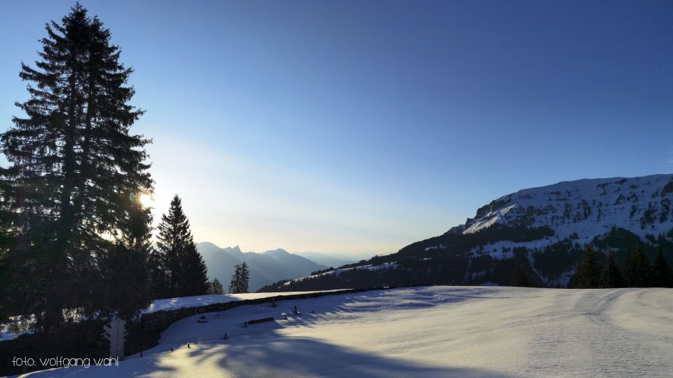 Rüber zum Wissmeilen hoch, wieder mehr oder weniger feste Schneedecke, die Nordflanke runter knietiefer Pulver bis 2'200m, dann mehr und mehr Übergang zu nassem, schwerem Schnee.