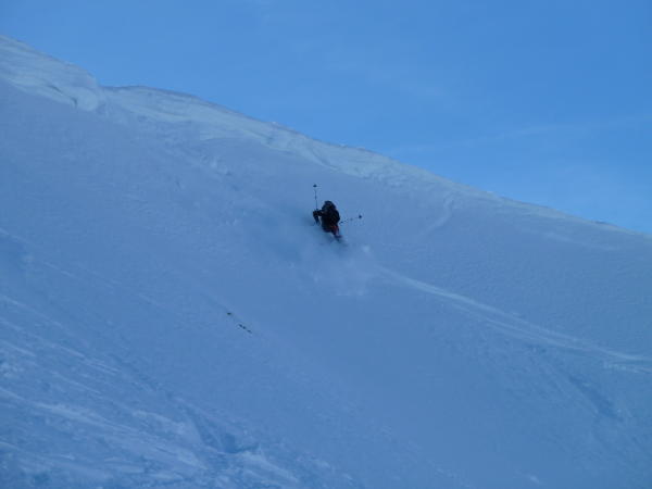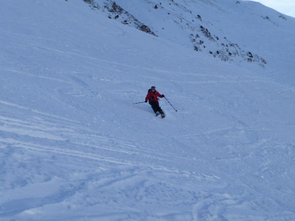 Von Chummlihütte bis Unteren Gantrischhütte Pisten ähnlich. Im oberen Teil noch Pulver oder Presspulver.