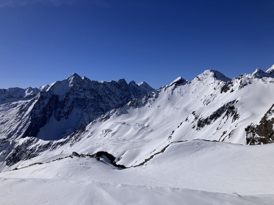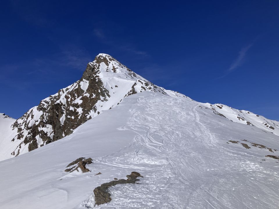 Abfahrt ab 11 Uhr dann nach Norden über sehr schöne pulvrige Hänge, kaum Steinkontakt. Noch ausreichend Platz für eigene Spuren.