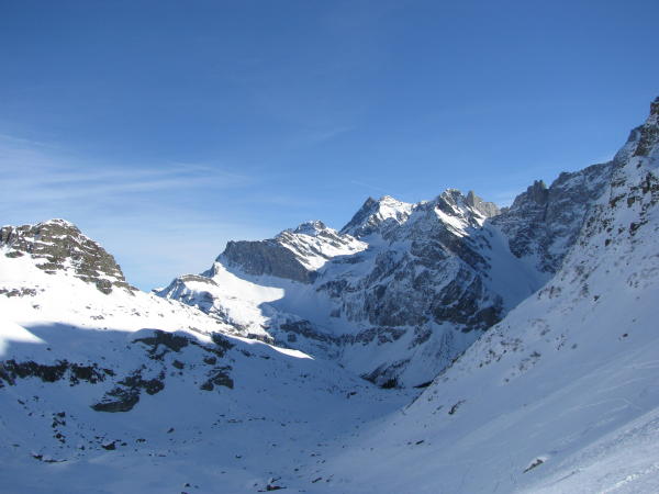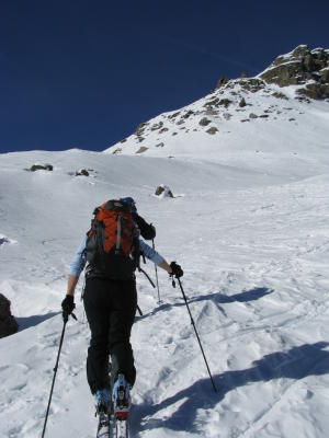 Es hat wenig Schnee. Vorsicht bei der Abfahrt => Steine!