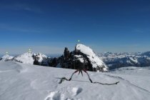 Kein vergleich wie herrlich pulverig es am Montag 31.Januar war. Der Wind und die wärme haben ganz arbeit geleistet. In der Chlialp breite harte aufstiegsspur, weiter bei Rotgand auf harter Spur mit Harscheisen.