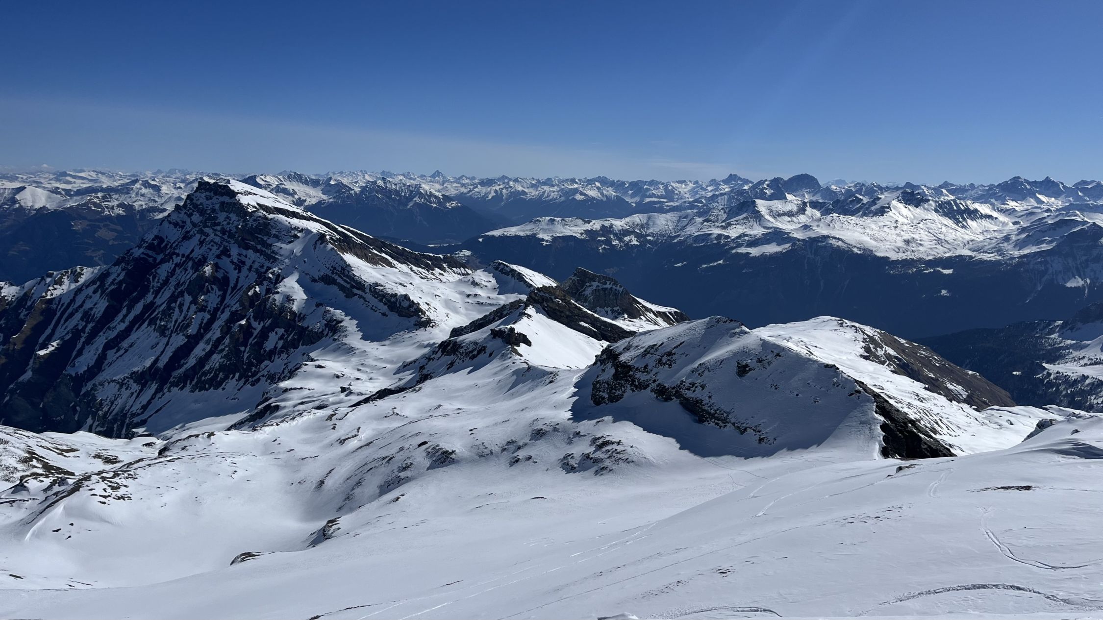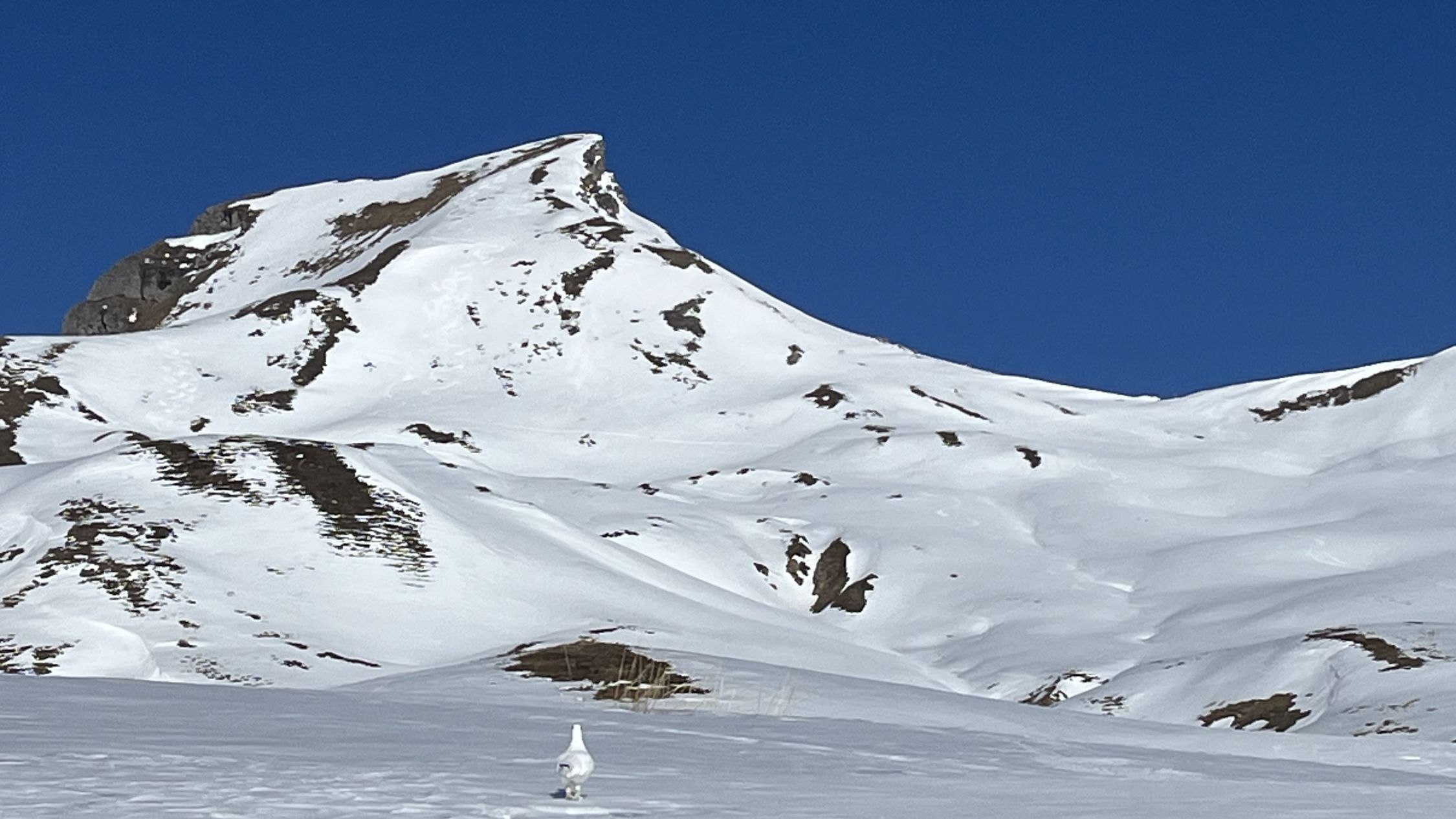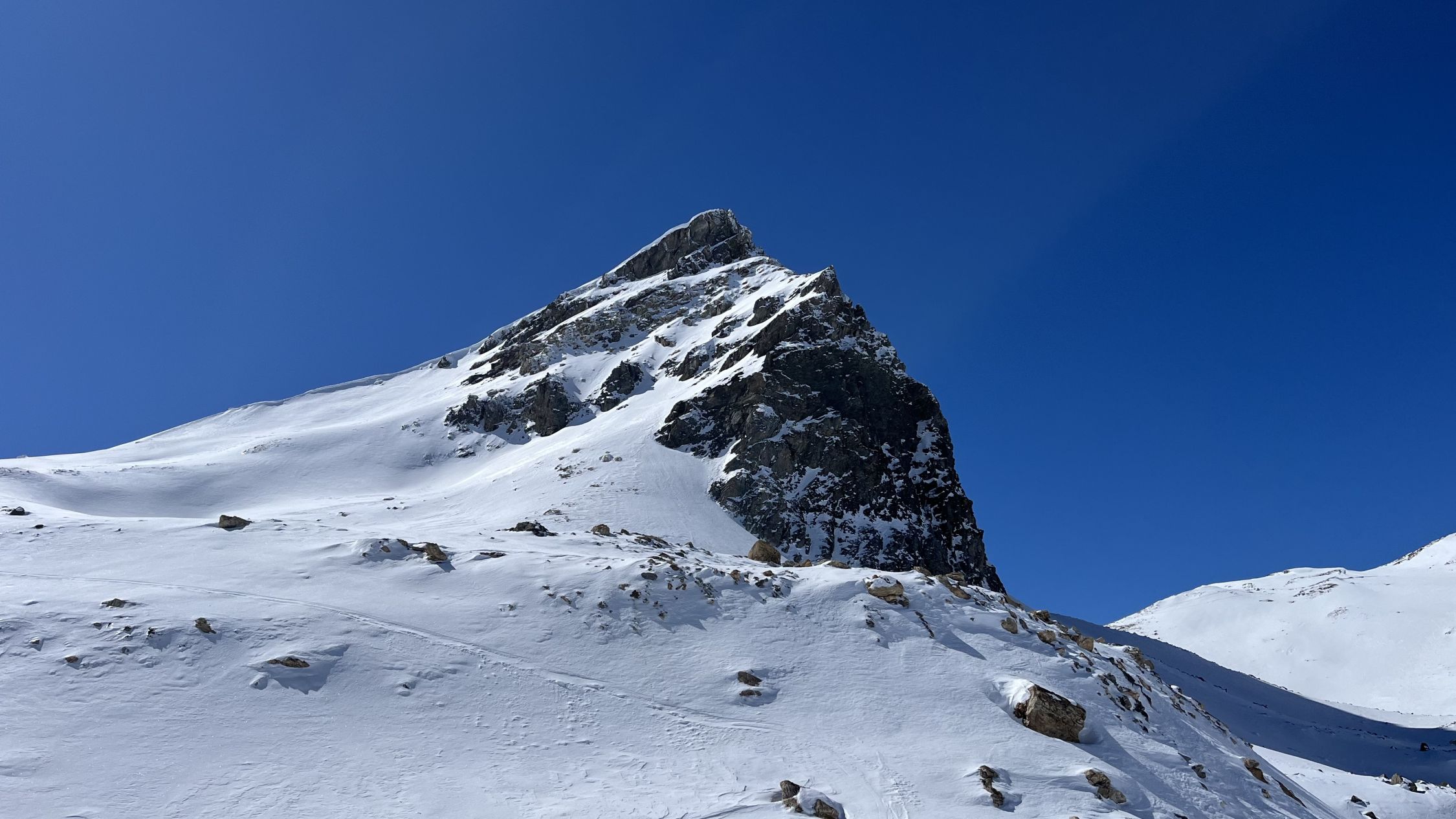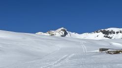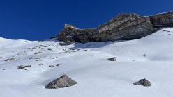 Weiter auf tragender Firnschneedecke aufs Pässli 2401. Dank zweier Spuren, welche die Flachvariante zu P. 2512 anzeigten, wurde ich vor mühsamen Querungen bewahrt.