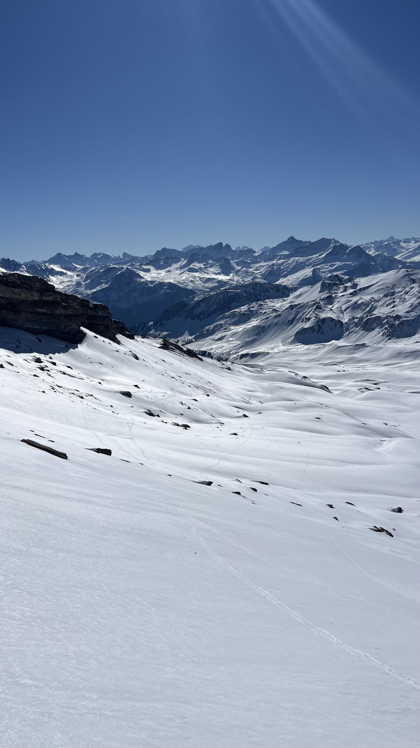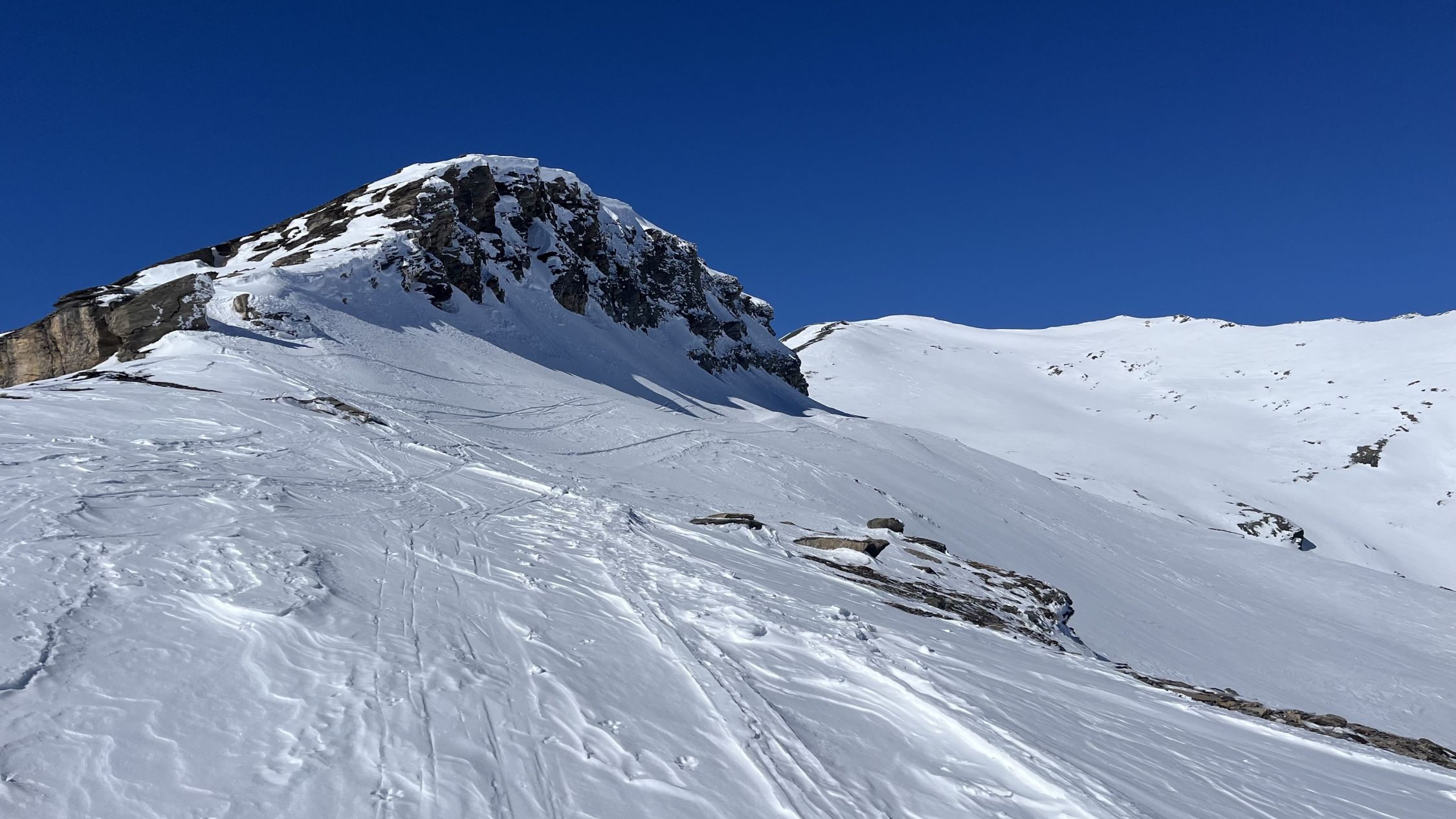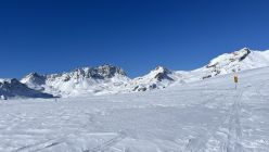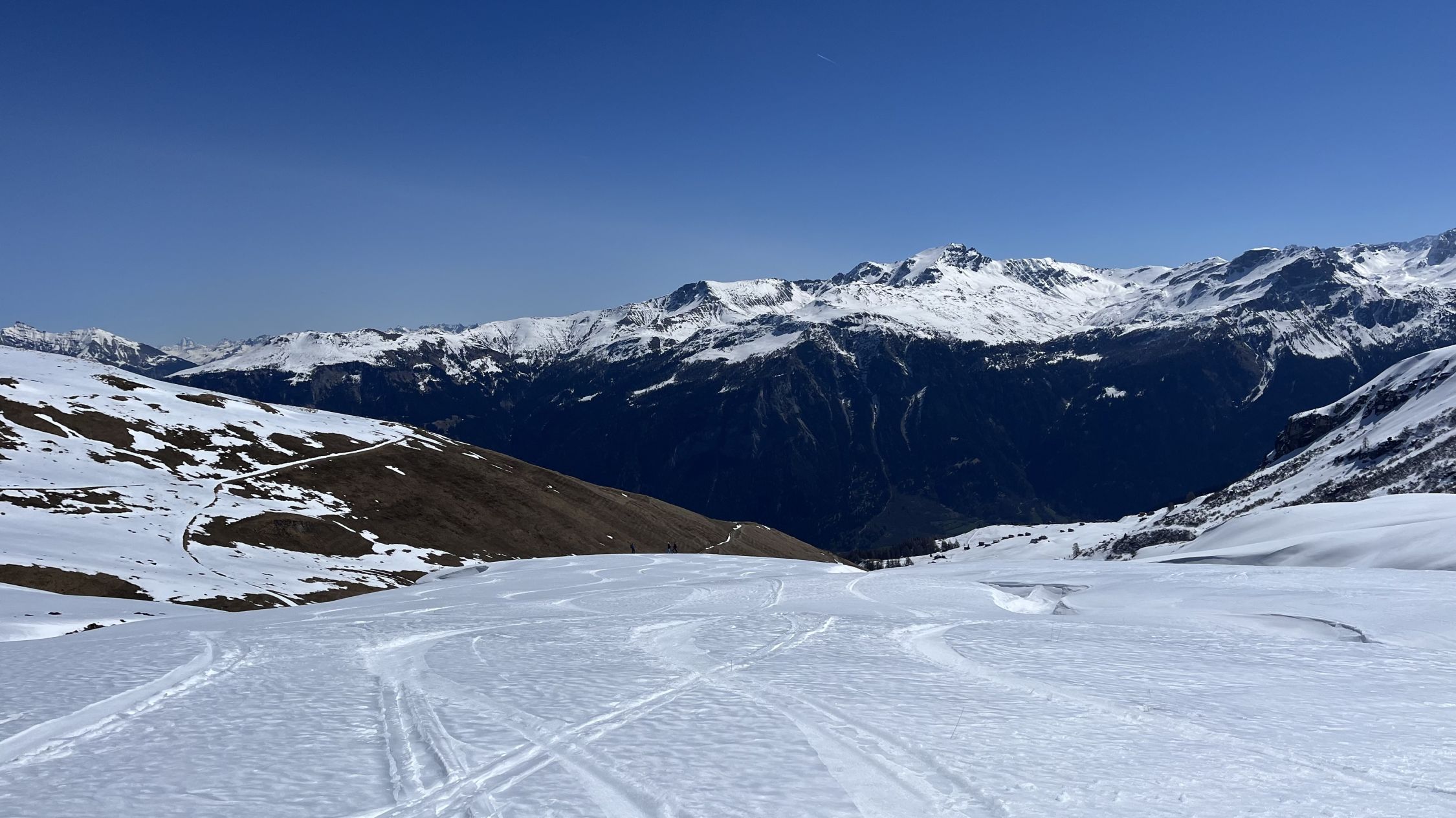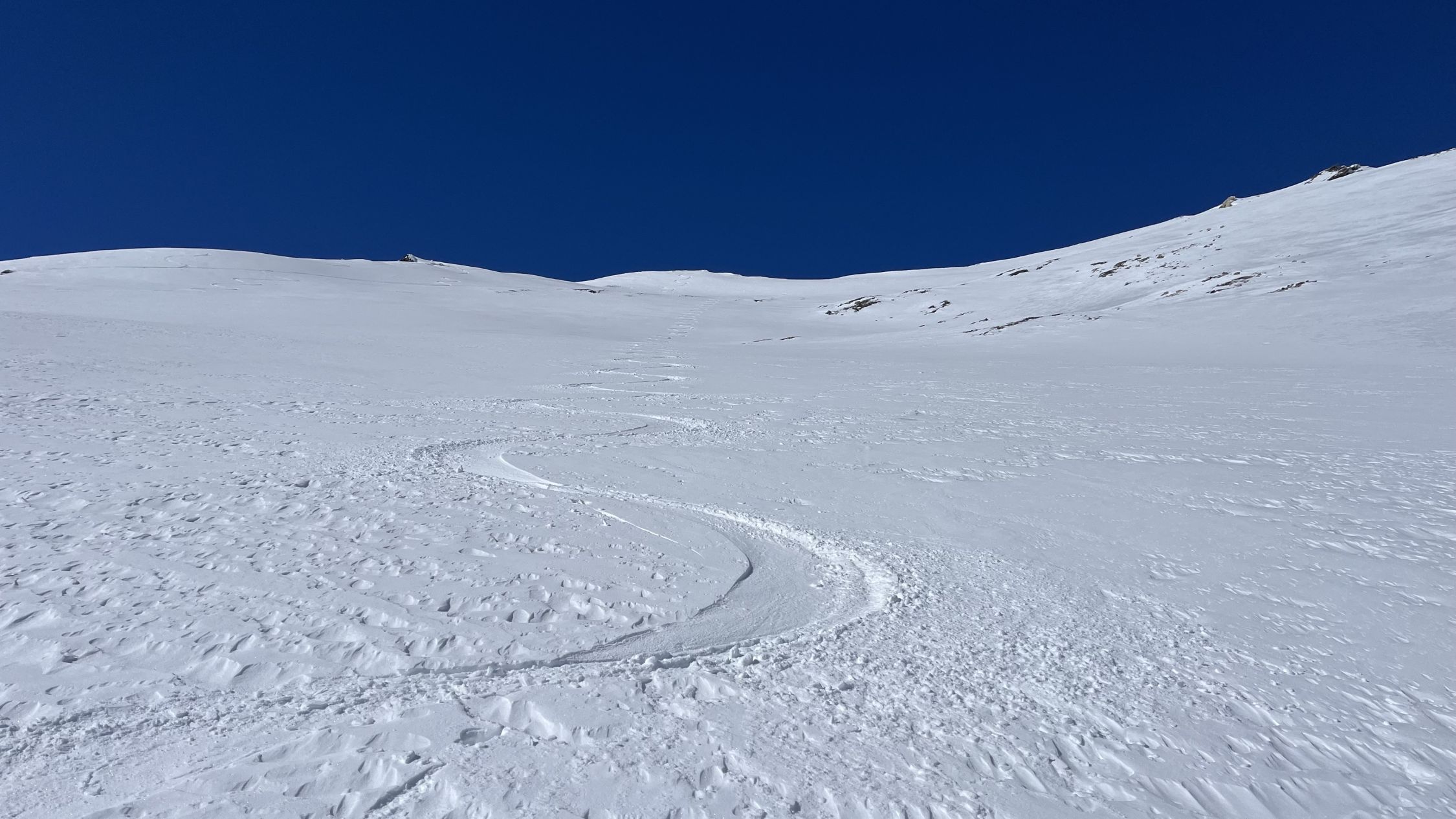 Die Gipfelrast auf den Carnusapass vertagend fuhr ich die ersten gut 200 Höhenmeter in erstaunlich gutem Pulver.