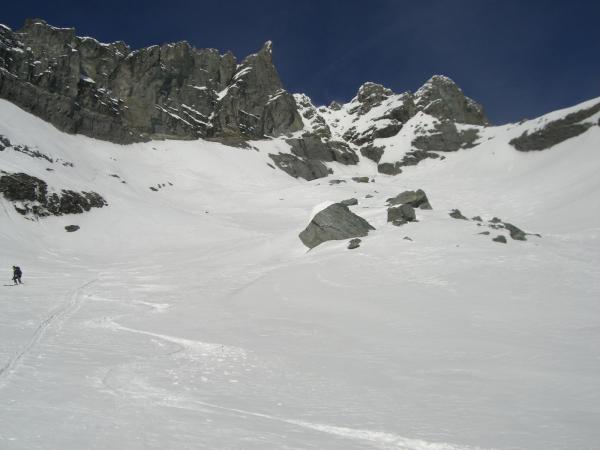 sehr sehr wenig Schnee. Im Taminatal und auf dem Sommerweg immer wieder abschnallen. ab 1700m genug Schnee. Südwandcouloir um 10 Uhr noch harter Trittschnee, um 12 Uhr oberflächlich so aufgeweicht, dass man es abfahren kann.
