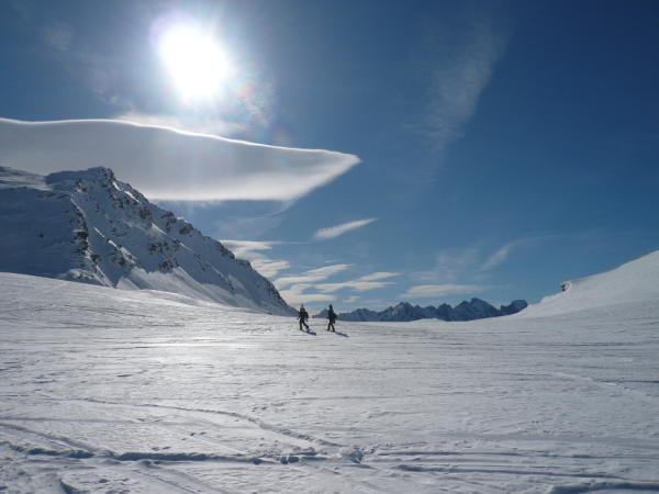 Kompakte Schneesituation mit rund 20cm Pulverschnee. Im Tagesverlauf wärmer und strahlende Sonne.