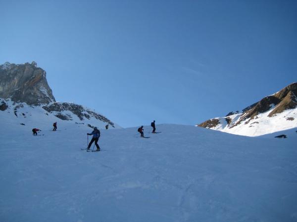 Aufgrund der relativ großen Gruppe war das Vorwärtskommen nicht ganz so zügig möglich. Es wurde daher auf den Gipfelanstieg verzichtet. Trotzdem war es ein außerordenlich schöner Tourentag in einer wunderbaren Berggegend mit lauter netten Leuten.