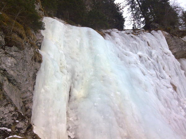 Nach meinem gestrigen Krankenlager :-( musste heute mind. eine Erkundungstour her :-). Ohne Partner, aber mit viel Eiskletter-Lust gings nach Kandersteg. Da der Sektor Skipiste durch zwei Seilschaften belegt war lief ich weiter zum unteren Sektor Winteregg, den ich heute für mich hatte. Im linken Bereich liess sich ein super Toprope legen und ich konnte meine Arme langziehen.