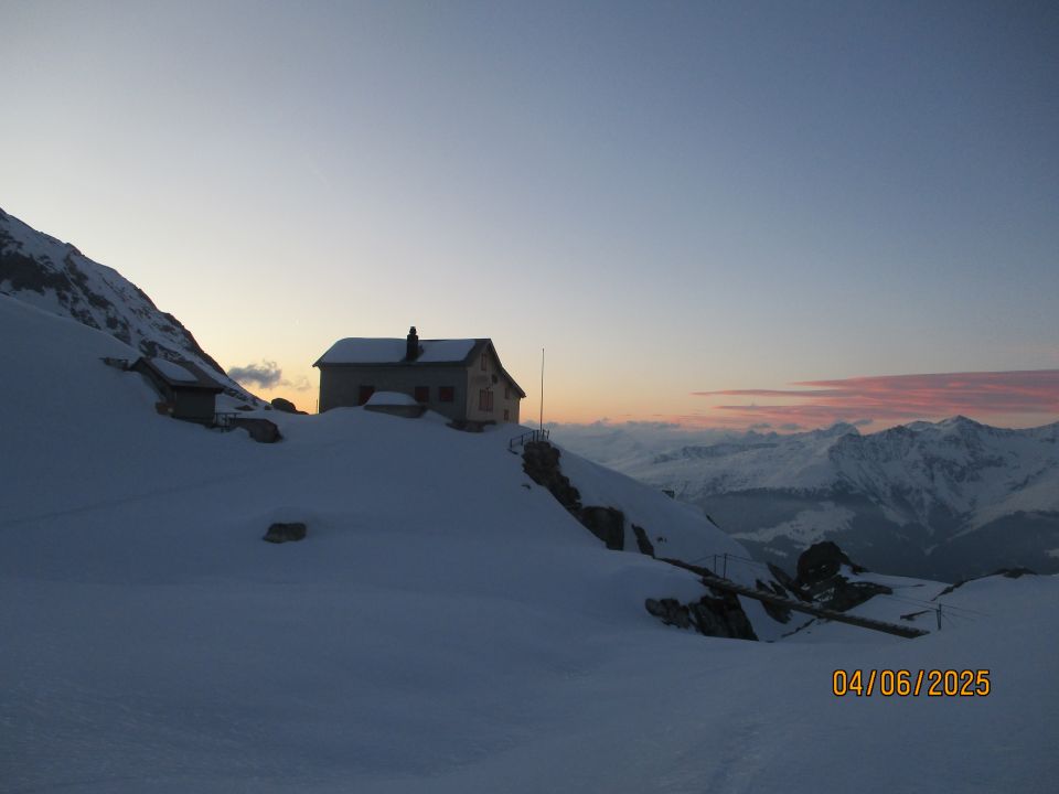 Auf unserer zweitägigen Tour mit Übernachtung auf der derzeit unbewirtschafteten Puntegliashütte erlebten wir zwei verschiedene Klimata: An- und Abstieg südlich der Fuorcla Posta Biala waren warm und windarm. Die Ostseite der Fuorcla, auf die Hütte zu, war hingegen kalt mit am Samstag stürmischem, am Sonntag kräftigem Ost- bzw. Nordwind.