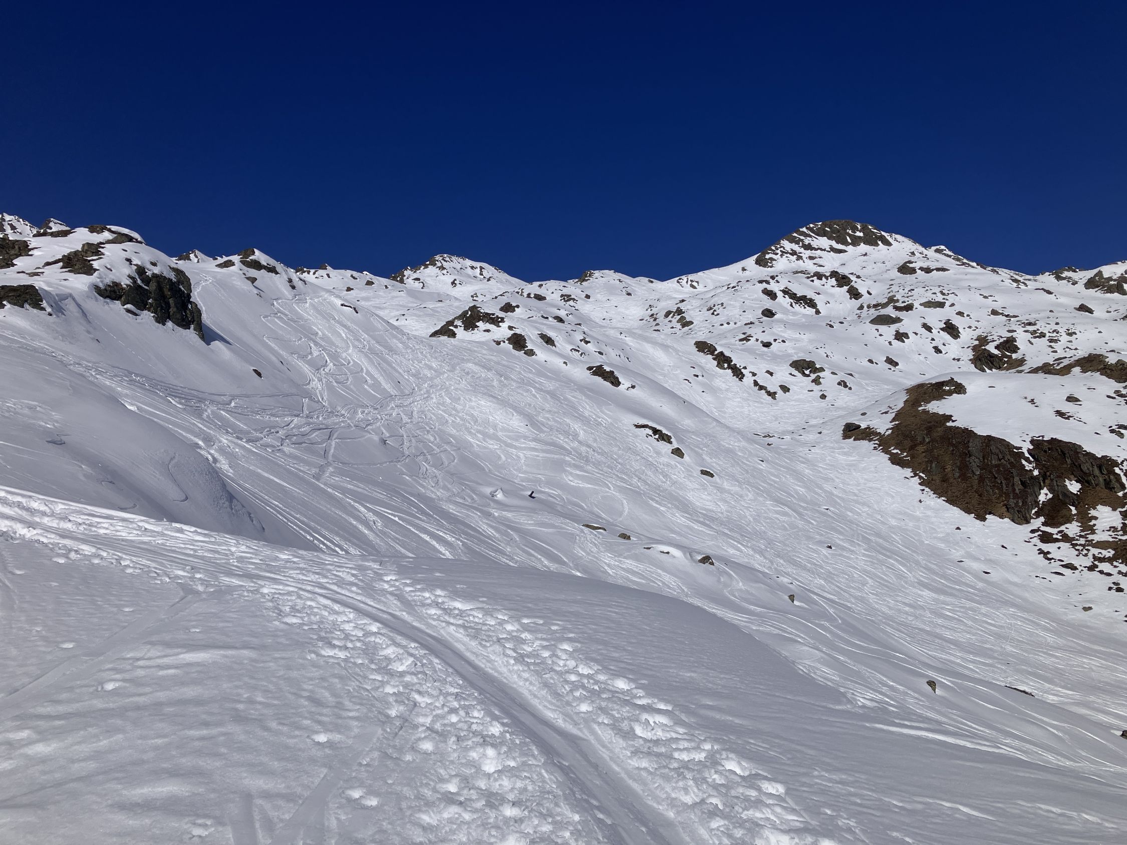 Abfahrt dann auf schön aufgefirnten Schnee.