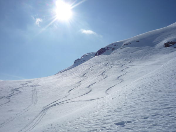 Im unteren Teil 3-4 apere Stellen wo die Skis getragen werden müssen. Der Aufstieg aufs Schaffanshüttli ist teilweise recht abgeblassen jedoch gut machbar. Von dort nach Fansfurggla und Wissgandstöckli wechselnd pulvriger oder abgeblasener Schnee. Die Tour war einsam, wir haben nur 2 Tourengeher gesehen. Auf dem Rückweg haben wir noch ein paar pulvrige Hängli gefunden. Auf dem Plateau oben insgesamt gute Verhältnisse es braucht jedoch dringend Schnee.