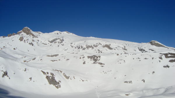 Insgesamt sehr gute Verhältnisse; in der Combe des Andins teilweise Harscheisen angenehm; Glacier du Wildhorn problemlos, keine Spalten sichtbar; Abfahrt insgesamt viel besser als erwartet, die obersten 250 Hm waren ein wahrer Genuss (feiner Pulver auf harter Auflage), dort hat es noch Platz für eigene Spuren; ebenso der obere Teil der Combe des Andins sehr gut zu fahren; Rest auch gut fahrbar;