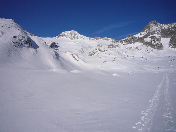 Aufstieg hartgepresster Schnee. Der Nordgrat tadellos! Die Abfahrt eine "Bruchharstqual".