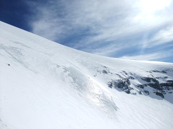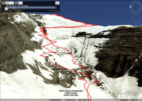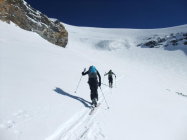 Besser als erwartet. Harscheisen montiert ab Punkt 3020. Steilhang teilweise eisig. Gipfelhang hart. Pickel und Steigeisen nicht nötig. Abfahrt gut mit einigen eisigen Stellen im Steilhang des Schwarzgletschers. Unten dann gut mit ein paar Zentimetern Pulver auf harter Oberfläche. Kein Steinkontakt.