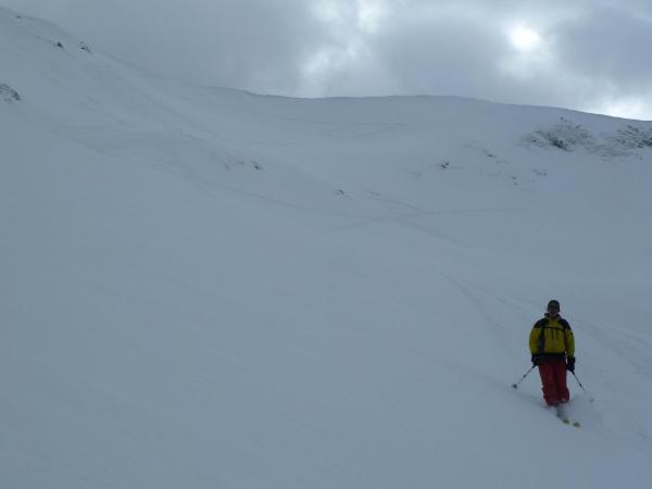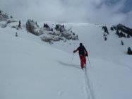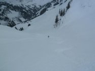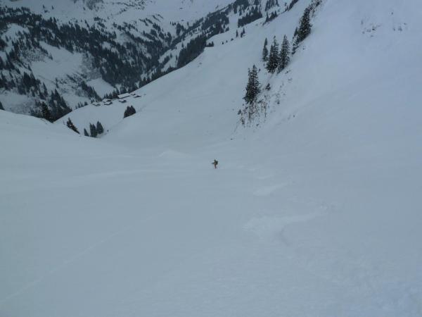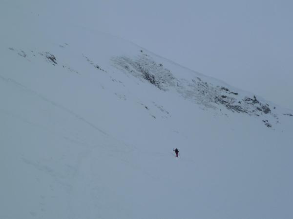Die Querung zum Morgetepass war uns zu heikel. Sind darum direkt den etwas flacheren Hang Richtung Schibenspitz angegangen (wie mehrere Tourengänger vor und nach uns).