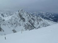Bei unserer Abfahrt vom Schibenspitz um ca. 14 Uhr war die Querung zum Morgetepass immer noch unbegangen.