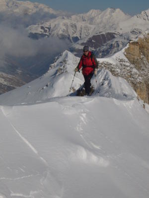 Pulverschnee, ob 3000m windgepresster Harsch, kalt aber sehr sonnig
