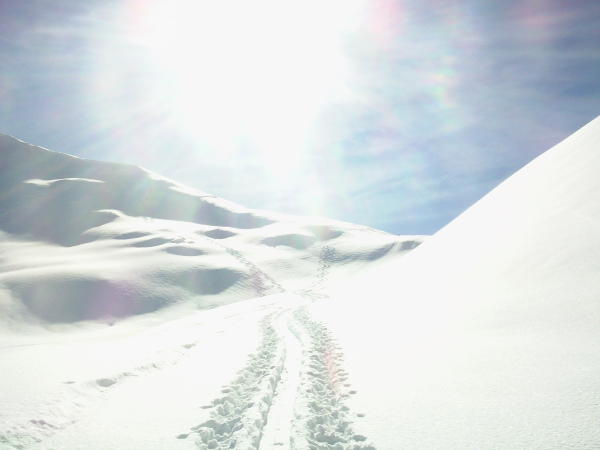 Top. Es hat so ab 1700 MüM zünftig Neuschnee, sicher 20-30 cm, in den Mulden mehr. Sehr gute Spur. Abfahrt: Prima. Man kann auf Höhe Alphaus statt dem Weg nach auch rechts den steileren Hang am Wald entlang runter. Das ist bedeutend amüsanter. Weiter unten dann auf dem Weg bleiben, denn der unterste Hang ob Grimmialp hat nicht genug Schnee für die Abfahrt (oder noch nicht genug...).