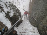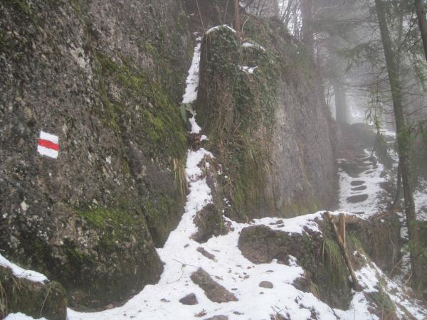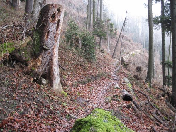 Der "Alte Rigiweg" ab P 748 bis P 1018 ist offiziell gesperrt. Begehen auf eigenes Risiko. Allerdings wird der Steig trotz Steinschlag und Erdrutschen bestens gepflegt, mit wiederum viel Engagement sind jene neuen Holzstufen und Holzgeländer montiert, sogar eine Eisentreppe ist installiert.