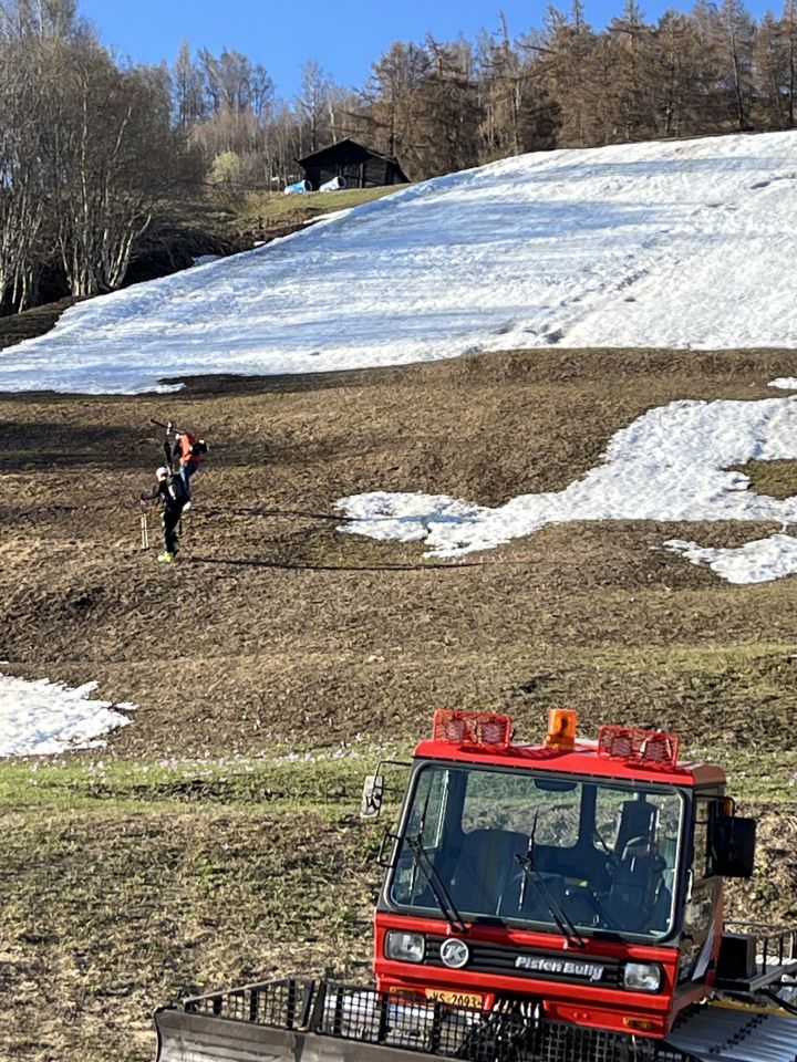 Ab Eischoll über Piste mit wenigen Unterbrechungen bis ~1800m. Weiter durch offenes schönes (lärchen/Walliser)Wald. NE Rippe Steindurchsetzt. Abfahrt von P2461 nach Osten direkt in die Talsohle durch Hang/Couloir.