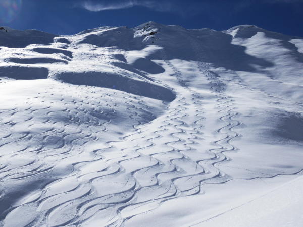 Aufstiege Risetenhorn, Fulen und Wissgandstöckli Sulzschnee, rest Pulver.