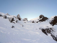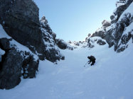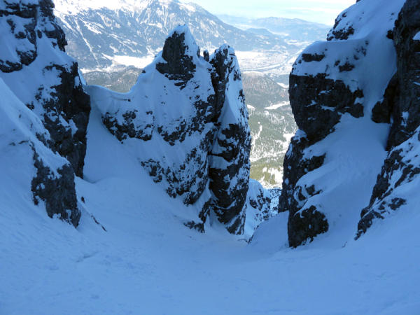 So lange es kalt bleibt, dürfte sich in der Rinne und auch in der normalen Abfahrt übers Nordkar nicht viel ändern.