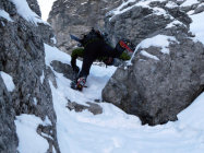 Die zwei Engstellen können mit Pickel und Steigeisen problemlos abgestiegen werden.