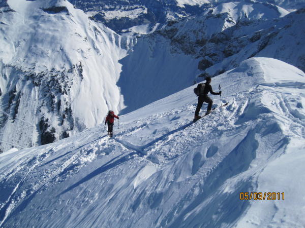 Kleinere Neuschneebretter vom Verbindungsgrat Gurbs-Cheibehorn